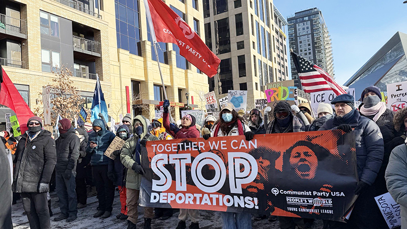 As the National Committee meets today, the center of the struggle for democracy in this country is in the Twin Cities. And that struggle took a dramatic turn a week ago last Friday when the people of Minneapolis and St. Paul spoke in one voice saying, “No work, no school, no shopping.” On that bitter cold day, in -15 degree weather, 75 thousand marched against ICE and MAGA state terror.