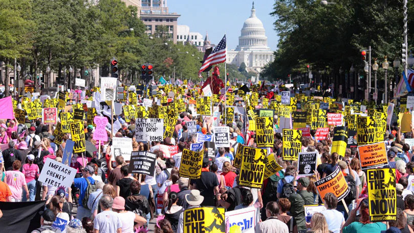 Opposition to President George W. Bush’s “you are with us or you are with the terrorists” response to the September 2001 attacks mainly came from the left of the peace movement. But opposition to Bush’s insistence on invading Iraq again in 2003 was broad and massive. It led to the creation of United for Peace and Justice, a huge antiwar coalition that managed to bring hundreds of thousands of protesters into the streets. Once the Bush administration, ignoring the protests, actually invaded Iraq, the peace movement slowly subsided. What remained continued pushing for the U.S. to abide by treaties that limit nuclear weapons. These were mostly local peace actions, and the peace movement was unable to generate any substantial, visible, national peace pressure.