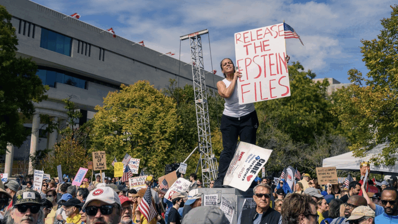 Images: Epstein’s Injustice. Fred Barr. CPUSA; Ghislaine Maxwell and Jeffrey Epstein mugshots. Creative Commons. Release the Epstein files. Geoff Livingston/Wikimedia Commons; Minnesota Women’s March. Fibonacci Blue/Wikimedia Commons.