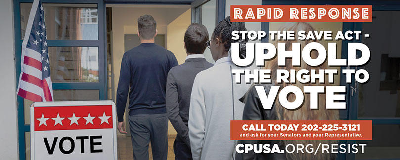 Call and write or visit your members of Congress to strongly oppose H.R.22 — the voter suppression “SAVE” Act. If passed, it would require showing a passport or birth certificate in federal elections, based on lies that non-citizens vote. This act would make it more difficult for working-class people to vote—especially women, immigrants, people of color, and low-income workers. We must defeat the anti-voter “SAVE” Act and uphold voting rights by passing the John Lewis Voting Rights Advancement Act!