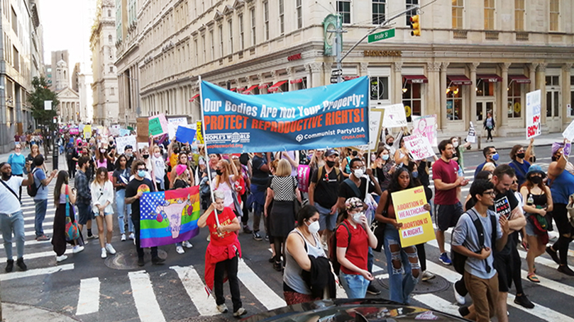 Images: CPUSA at women’s march 2021 (CPUSA); Kellogg’s strikers, Jared Cummings, Kellogg Union Members Appreciation Page (Facebook); Warnock supporter, Raphael Warnock (Facebook); ECPS victory, SEIU; George Floyd mural, Lorie Shaull, Creative Commons (BY-SA 2.0); Afghanistan, U.S. Army (CC BY 2.0); Juneteenth celebration, covantnyc (Pixabay); Gabriel Boric (Facebook); Indian CP and farmers (Facebook); CPC meeting, CPC.