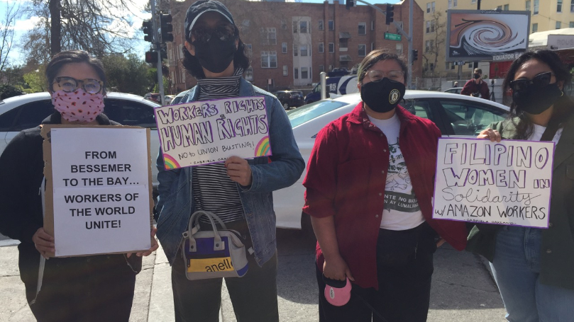 Images: “What We’re Seeing Now: Air Pollution and Climate Change” by Flickr/Evanna Chung (Creative Commons); “Southern Right Whale jumping” by Willem Koets (CC BY-NC 2.0); “A green new deal” by kboo.org (Creative Commons); Spruce Tree Octopus Roots by David Berry (CC BY 2.0); “The swans found the open water” by Franklin Matters (Creative Commons); “Liquified gas extraction” by Maciej Margas(CC BY-SA 4.0 , via Wikimedia Commons); “Some of the demonstrators in front of an Amazon-owned Whole Foods store in Oakland on Feb. 20, part of a national day of solidarity to support Amazon workers struggling for union recognition in Bessemer, Alabama” by Urszula Wislanka (Creative Commons).