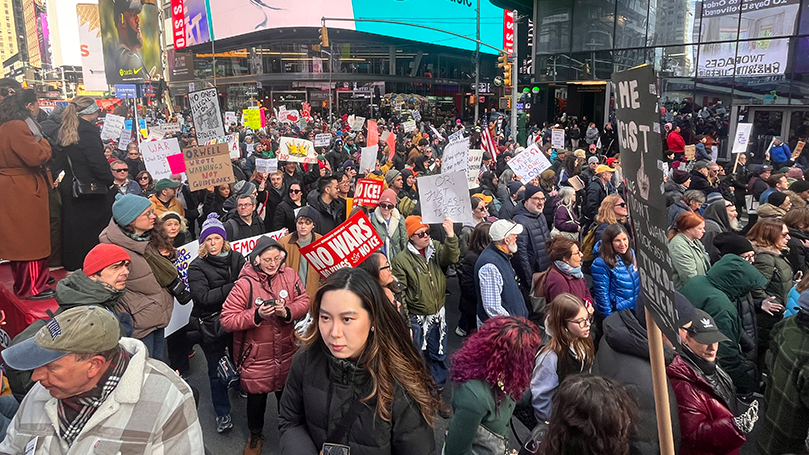 No Kings 3 was by far the largest, broadest, and most important expression of the anti-MAGA upsurge to date. Organizers estimate that some 8 million people turned out at over 3,000 protests across all 50 states. In New York City, it is estimated that some 300,000 demonstrated against Trump and the MAGA agenda. Organizers anticipated such a massive turnout that they directed marchers along two avenues instead of one. They were right: protesters filled both 7th Avenue and Broadway before merging at Times Square and marching to 34th Street, where the demonstration ended.