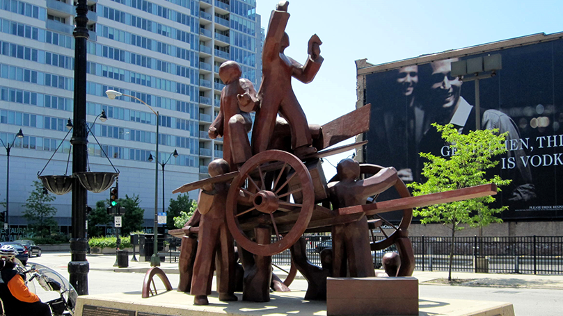 Images: May Day Strong. Public domain. Marching in New York by Cameron Orr/Peoples World. CC BY-NC 4.0. May Day by Third Act. Public domain. Site of the Haymarket Riot by Stephen Hogan. CC BY 2.0.